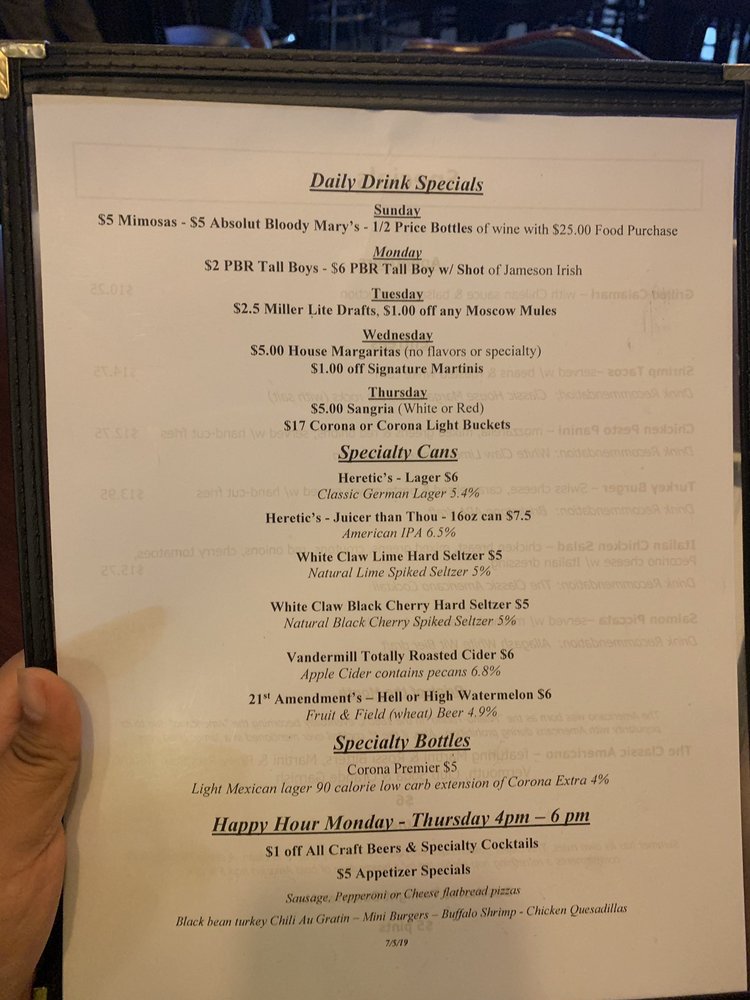Monday - Thursday 4 - 6 pm (dine in only)